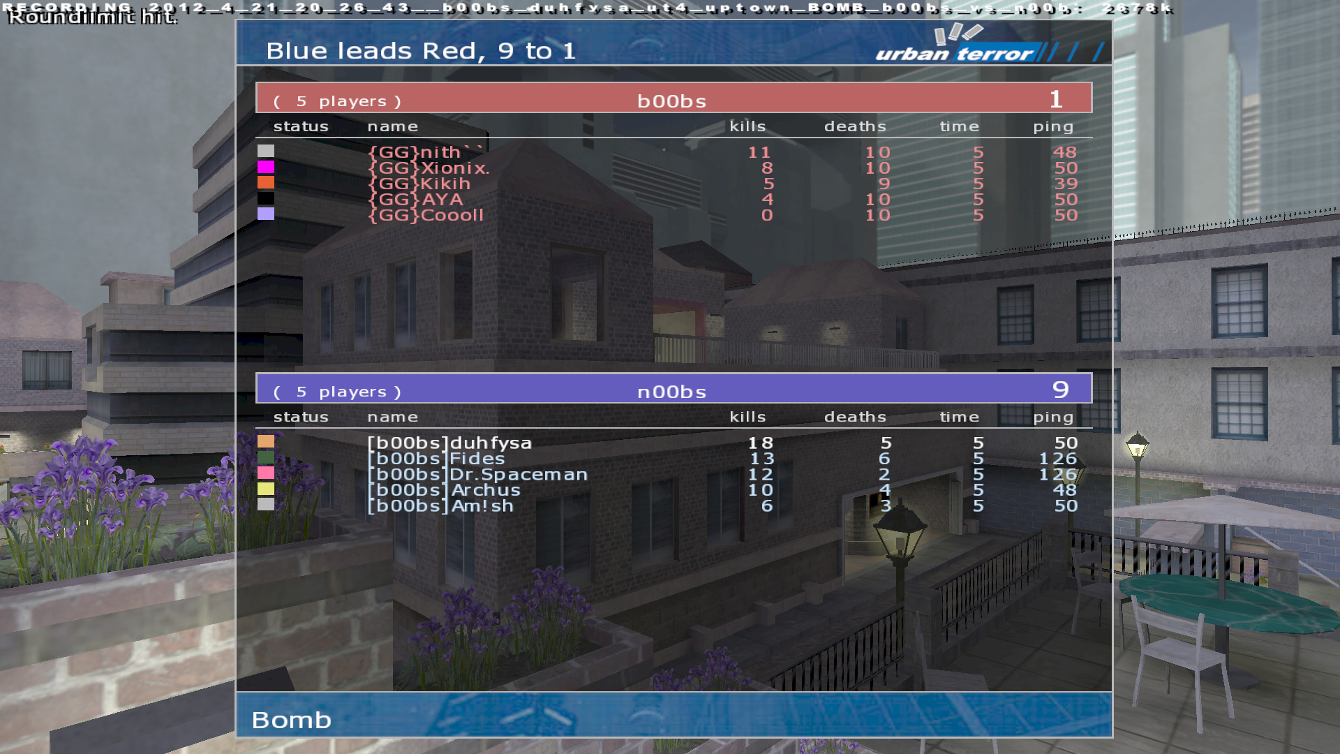 Round 1 : Uptown BOMB = 8:2 + 9:1 = 17:3 Round 2 : Orbital BOMB = 8:2 + 9:1 = 17:3 |